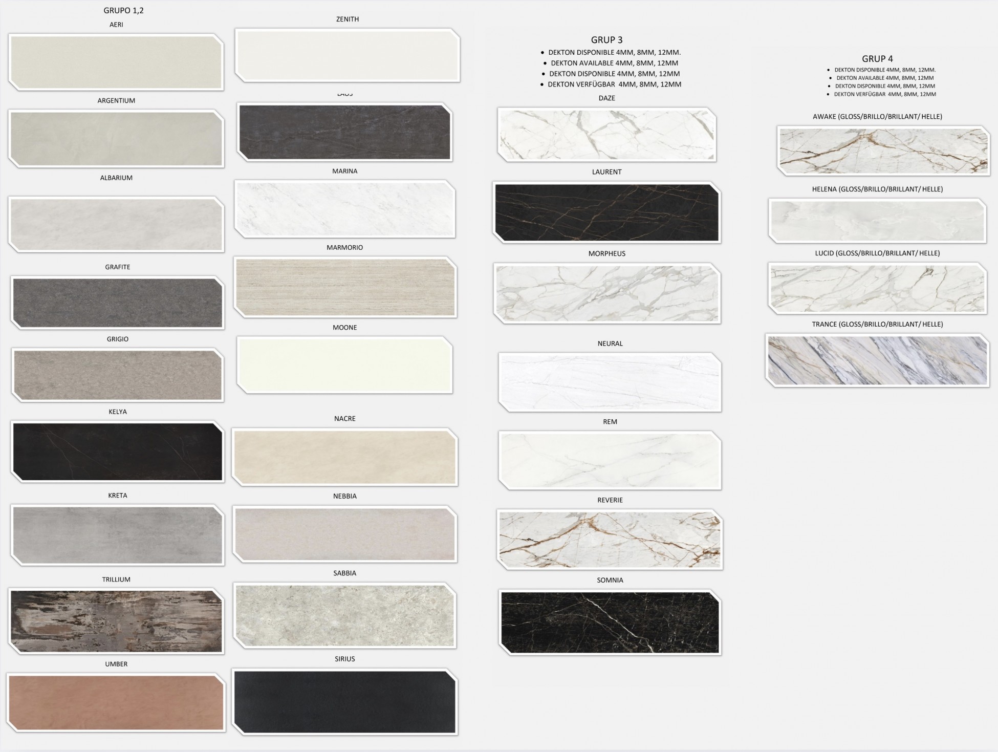 Veelzijdigheid: Dekton is beschikbaar in verschillende kleuren, afwerkingen en formaten, wat het een populaire keuze maakt voor zowel moderne als klassieke ontwerpen. Het kan worden gebruikt voor werkbladen, tafels, vloeren en wandbekleding.